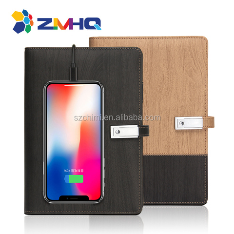 พาวเวอร์แบงค์อัจฉริยะไดอารี่อิเล็กทรอนิกส์แบบปรับแต่งได้พร้อมที่ชาร์จไร้สายยูเอสบีของขวัญขององค์กรพร้อมโลโก้